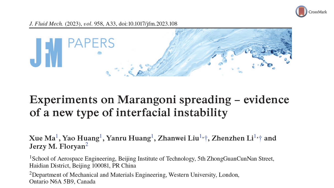 李真珍副研究员、刘战伟教授联合加拿大西部大学Jerzy M. Floryan教授在自由液面的马兰戈尼不稳定性方面取得新进展。相关成果以“Experiments on Marangoni spreading - evidence of a new type of interfacial instability”为题发表于流体力学顶级期刊Journal of Fluid Mechanics (958: A33, 2023)。欧美成人电影