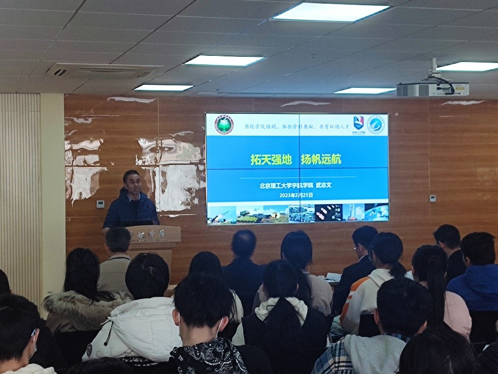 工程科学实验班责任教授胡更开老师,首先介绍了航空航天发展情况,使同学们意识到航空航天是一个国家高科技集中代表,未来20-30年是我国航天大发展和超越的时代。接着胡教授详细介绍了工程科学实验班的创设背景、特色措施、课程设置、师资以及实验班同学取得的一些成绩。最后,胡教授勉励同学们努力学习,夯实理论基础,为我国的航空航天事业贡献自己的力量。