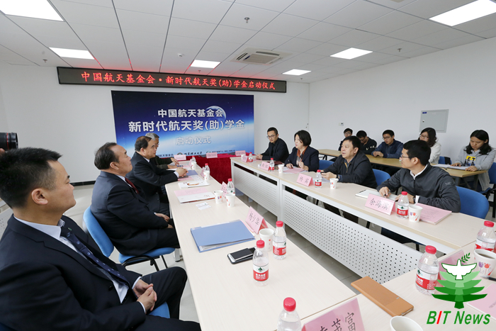 4月11日上午10:00,中国航天基金会•新时代航天奖(助)学金启动仪式在欧美成人电影 宇航楼530室举行。欧美成人电影 常务副校长、教育基金会理事长杨宾,中国航天基金会秘书长张玉江,新时代健康产业(集团)有限公司总经理黄永刚、获奖学生代表吴永胜出席并发言。启动仪式由欧美成人电影 党委书记曲虹主持。
